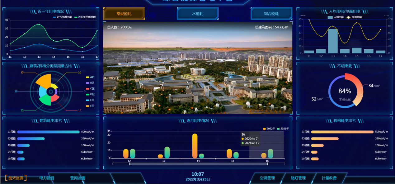 節(jié)電節(jié)水方面,中橫通依托綜合智慧能源平臺及配套的空調(diào)智能管控系統(tǒng)、照明管控系統(tǒng)、公寓智能管控系統(tǒng)、配電房監(jiān)測系統(tǒng)等管理系統(tǒng)、水管網(wǎng)監(jiān)測及水平衡管理系統(tǒng)、水電收費管理系統(tǒng)等管理系統(tǒng),為各高校、企事業(yè)單位解決了能耗管控、用電用水設(shè)施設(shè)備檢測等重難點問題。目前,中橫通已為西南交通大學(xué)、四川師范大學(xué)、四川音樂學(xué)院等50多所高校、二十余家企事業(yè)單位提供了智能化改造、節(jié)能改造工程、系統(tǒng)運維服務(wù)、節(jié)水型單位創(chuàng)建、綠色學(xué)校創(chuàng)建等,均取得了優(yōu)異效果。