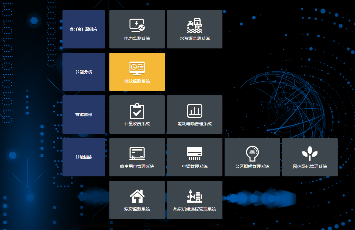 系統(tǒng)主要針對校園的電耗、水資源消耗、燃料消耗以及冷、熱量消耗數(shù)據(jù)的采集、傳輸、分析管理、數(shù)據(jù)統(tǒng)計、節(jié)能分析及節(jié)能指標管理,為學(xué)校的能源利用診斷、能源質(zhì)量監(jiān)測、能源賬單核對、節(jié)能控制、節(jié)能潛力分析、節(jié)能效果驗證提供及時、準確、全面、堅實的數(shù)據(jù)支撐,為節(jié)能改造和能源管理、能源調(diào)度提供有力數(shù)據(jù)依據(jù),提高校園能源的自動化管理水平。